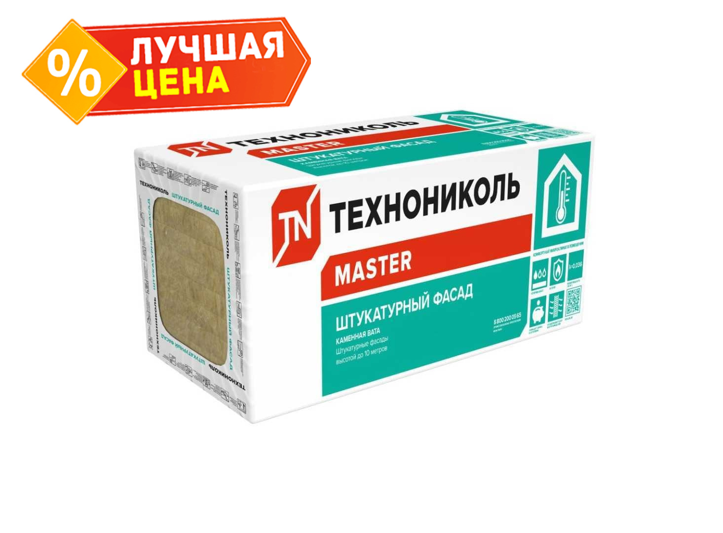 Каменная вата «Штукатурный фасад» выпускается в виде плит. Применяется при наружном утеплении и звукоизоляции фасадов высотой до 10 м под штукатурку. Плиты монтируются при помощи дюбелей, после чего поверхность армируется стеклотканью, крепящейся на клеевой раствор. После затвердевания и покрытия грунтовкой выполняется отделка декоративной штукатуркой с последующим окрашиванием. Страна производства — Россия.